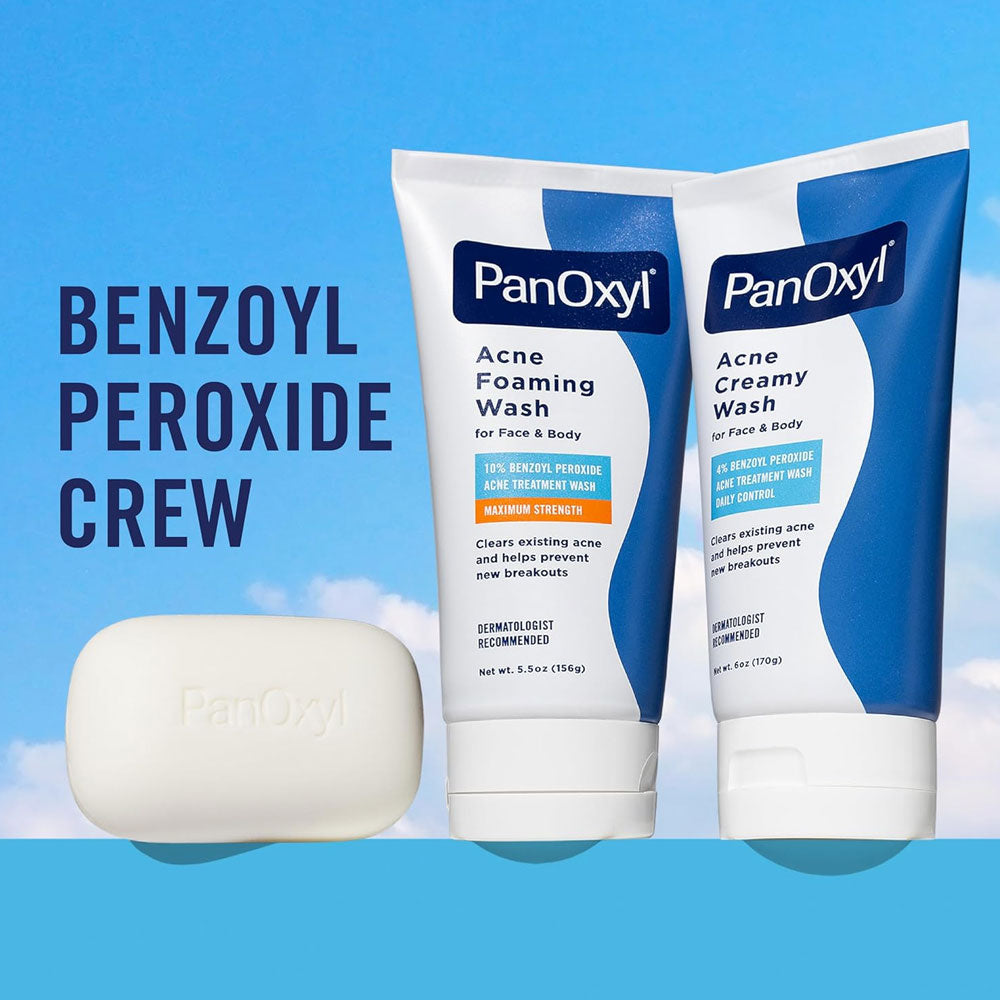 The PanOxyl Acne Creamy Wash (4% Benzoyl Peroxide) is a dermatologist-recommended, daily-use cleanser designed to treat and prevent acne without irritating the skin. With 4% Benzoyl Peroxide, it effectively kills acne-causing bacteria, unclogs pores, and clears up blemishes on the face, chest, and back.